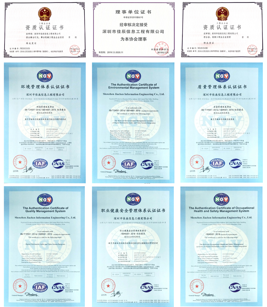 公司具備中國錄音師協會舞臺燈光、舞臺機械工程企業資質壹級資質